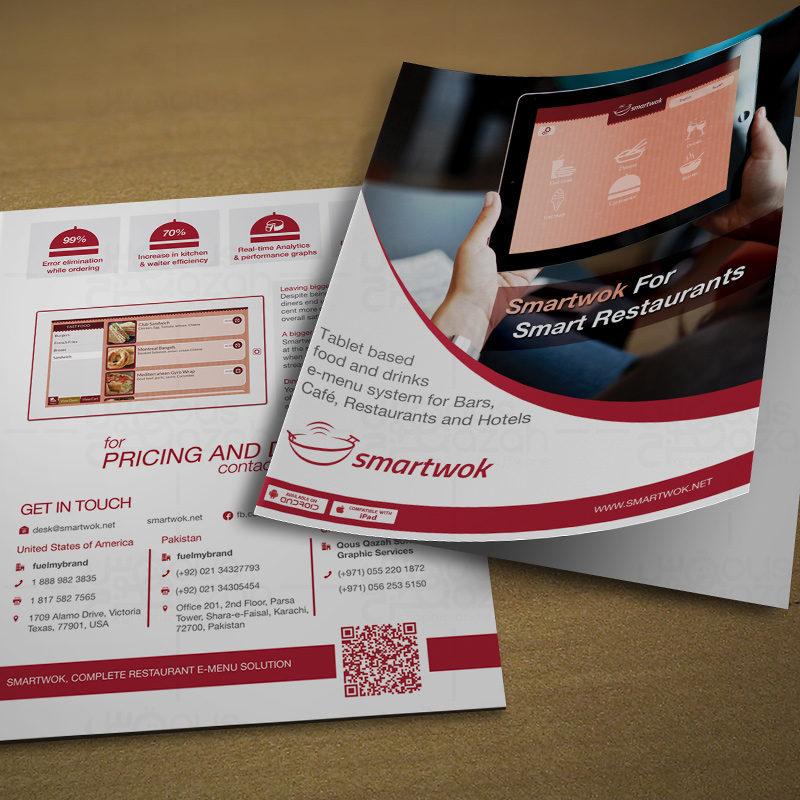 QousQazah has its own in-house talented Graphic Design team that designs creative and custom brochure layouts, menu card designs with engaging and eye catching graphics. Our Design Team specializes in creating high quality digital artwork – from your brief or from scratch.
